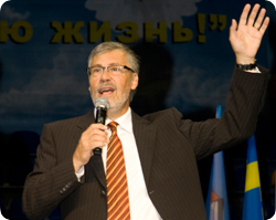 Яркой завершающей точкой первого дня конференции стала проповедь пастора Ульфа Экмана об основном призвании каждого верующего – преображаться в образ Иисуса Христа.