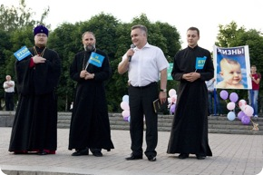 “Приходит время, когда верующие различных церквей встречаются на нужном перекрестке, - отметил в своём выступлении Леонид Падун, Старший епископ Украинской Христианской Евангельской Церкви и Старший пастор Христианской Церкви “Слово жизни” г.Донецка. - Дети дороги всем нам, и для каждого нормального человека ребенок – это драгоценность. Сегодня Украина празднует День защиты детей. Это означает, что дети нуждаются в защите. Библия говорит: “Спасай взятых на смерть, и неужели откажешься от обреченных на убиение?”. Мы здесь, чтобы спасать взятых на смерть. Я уверен, что каждый из нас счастлив, что он родился и живет на этой земле, но к сожалению, на сегодняшний день огромное количество детей никогда не смогло увидеть солнце, небо, цветы, потому что кто-то остановил их сердце, не разрешив им родиться и жить. Но каждая жизнь является святыней в глазах Божьих, и каждый нерожденный человек имеет право на жизнь!”.