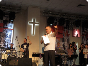 В воскресенье, 25 апреля, после того, как пастор Артур Симонян служил церкви “Слово жизни” г.Донецка на трёх общецерковных Богослужениях, состоялось торжественое закрытие молодежной конференции “Don't Stop 2010”. Пастор Артур учил о том, что вера без дел мертва. Мы верим Богу, но что наша вера производит? Каждый из нас призван к тому, чтобы не просто быть прихожанином в Церкви или получить какую-то позицию, но получить от Бога личное Слово, личное поручение, и идти в этот мир, чтобы служить людям, спасать людей от греха и научить все народы – в этом и заключается наша Миссия...