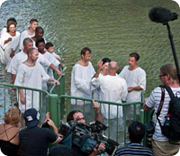 Возможность принять водное крещение является естественной частью тура “Слово жизни” в Израиль каждый год. Крещение – фундаментальная и важная часть христианской жизни, и возможность креститься в реке Иордан – в том самом месте, где крестился Сам Иисус – это то, что более 80-ти участников паломнической группы решили не упускать во время этой недели. Возле реки Иордан есть одно место, где обычно проводят крещение, и здесь в тот день собралось несколько групп из разных деноминаций. Это большое массовое крещение было снято главными израильскими телеканалами, а также CNN, Reuters, Associated Press и AFP. На сайте CNN помещено интервью с Пастором Робертом Эком, который говорит о крещении как о неотъемлемой и очевидной части христианской жизни.