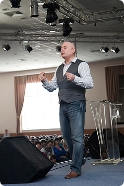 Відкриваючи конференцію, старший пастор Української Християнської Євангельської Церкви Леонід Падун поділився словом "Стань іншим". "Кожен з нас має потребу в змінах, але щоб стати іншими, нам потрібен Дух Святий! Тільки Божа сила може радикально змінити усе твоє життя і розтопити "крижану гірку ", на яку ти постійно то піднімаєшся, то з'їжджаєш вниз, терплячи поразку за поразкою.