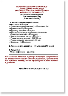 Ця потреба глибоко торкнулася мого серця, і я вирішив, що наша Церква з радістю погодиться допомогти - і не просто одноразово, але на постійній основі. Враховуючи те, що ми і самі сьогодні маємо потребу в коштах для будівництва Церкви, я вважаю що це також може бути нашим добрим посівом у Царство Боже. Святе Письмо говорить: "Душа, яка благословляє, насичена буде, а хто поїть інших, напоєний буде і він" (Приповісті 11:25). Я вірю, що коли наші руки відкриті на всяку добру справу, Бог не залишить нас у потребі, але благословить кожного, хто старанно дає, і віддячить як на Небесах, так і на цій землі.
